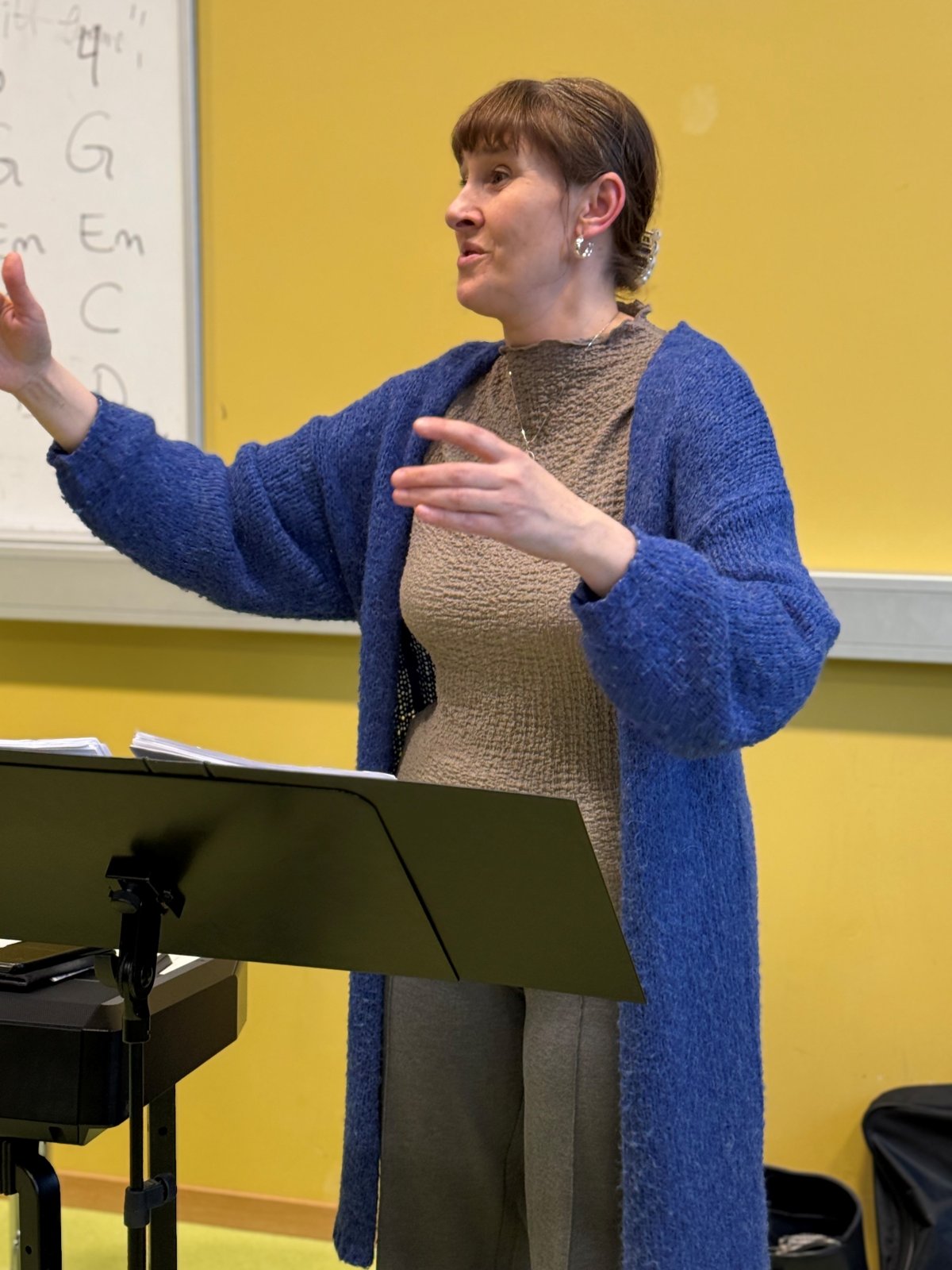 Vår faste dirigent er Darya Katyba, men hun er for tiden ute i permisjon. I mellomtiden har vi vært så heldige å få Anja Olsen som vikar. Hun 79-mod, fra Lillestrøm, men bor nå på Storforshei. Jobbet der som lærer siden 2005, først og fremst på ungdomstrinnet. Er nå tilknyttet Rana kulturskole. Utdannet allmennlærer (Høgskolen i Nesna). Mastergrad i musikk og ensembleledelse fra Nord universitet, Levanger 2019. Studert under bl.a. Jan Magne Førde og Frode Fjellheim. Dirigerer Alsta Vocali (fra 2022), DalaMix (fra 2009) og Gruben damekor (fra 2019) - og nå også Haukneskoret. Er selv sopran. Har sunget i bl.a Helgeland kammerkor, og Helgelandskor. Gjør en del solistoppdrag - både med kor og alene. Det jeg elsker mest med kor er fellesskapet - å skape musikken sammen - lagspillet - felles mestring - at alle er like viktige. Og at korsang fører mennesker sammen - folk som ellers kanskje aldri ville kjent hverandre blir venner for livet i et kor❤️